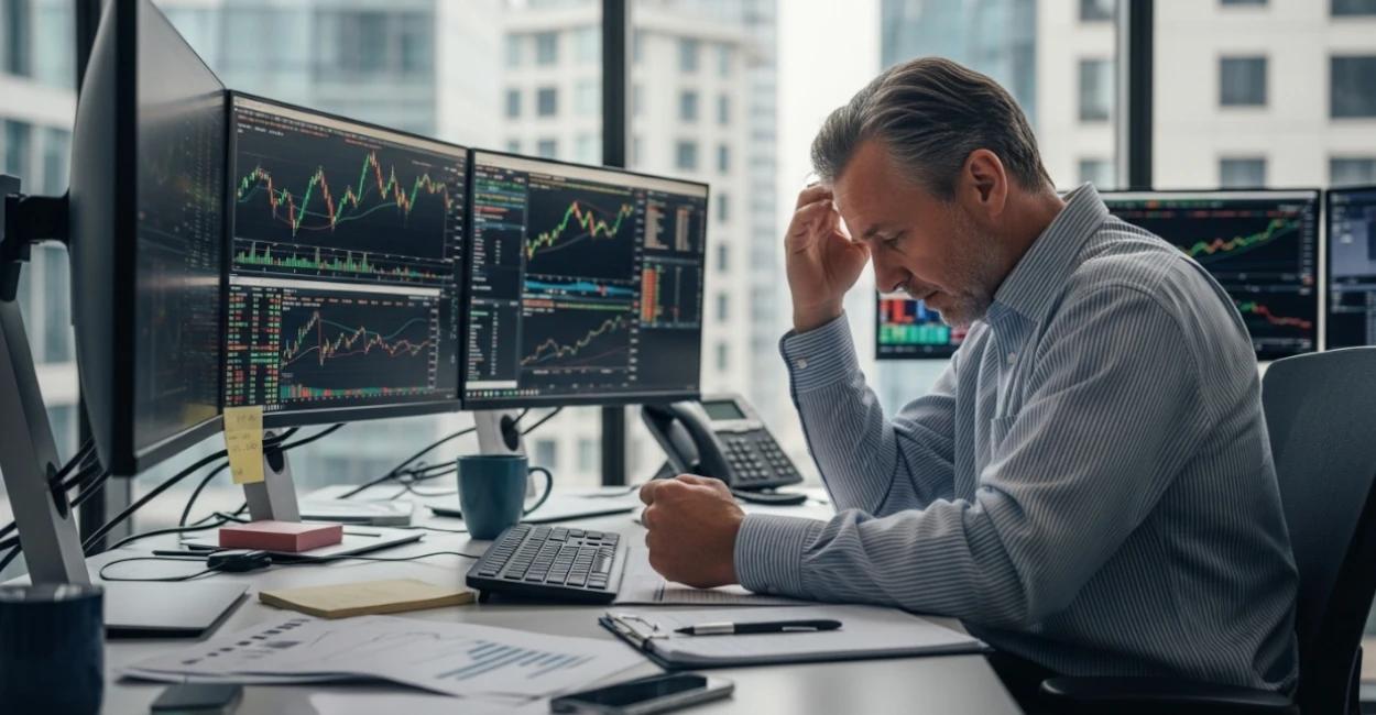 Trader refletindo sobre um loss pesado. Imagem: Imagen-4.